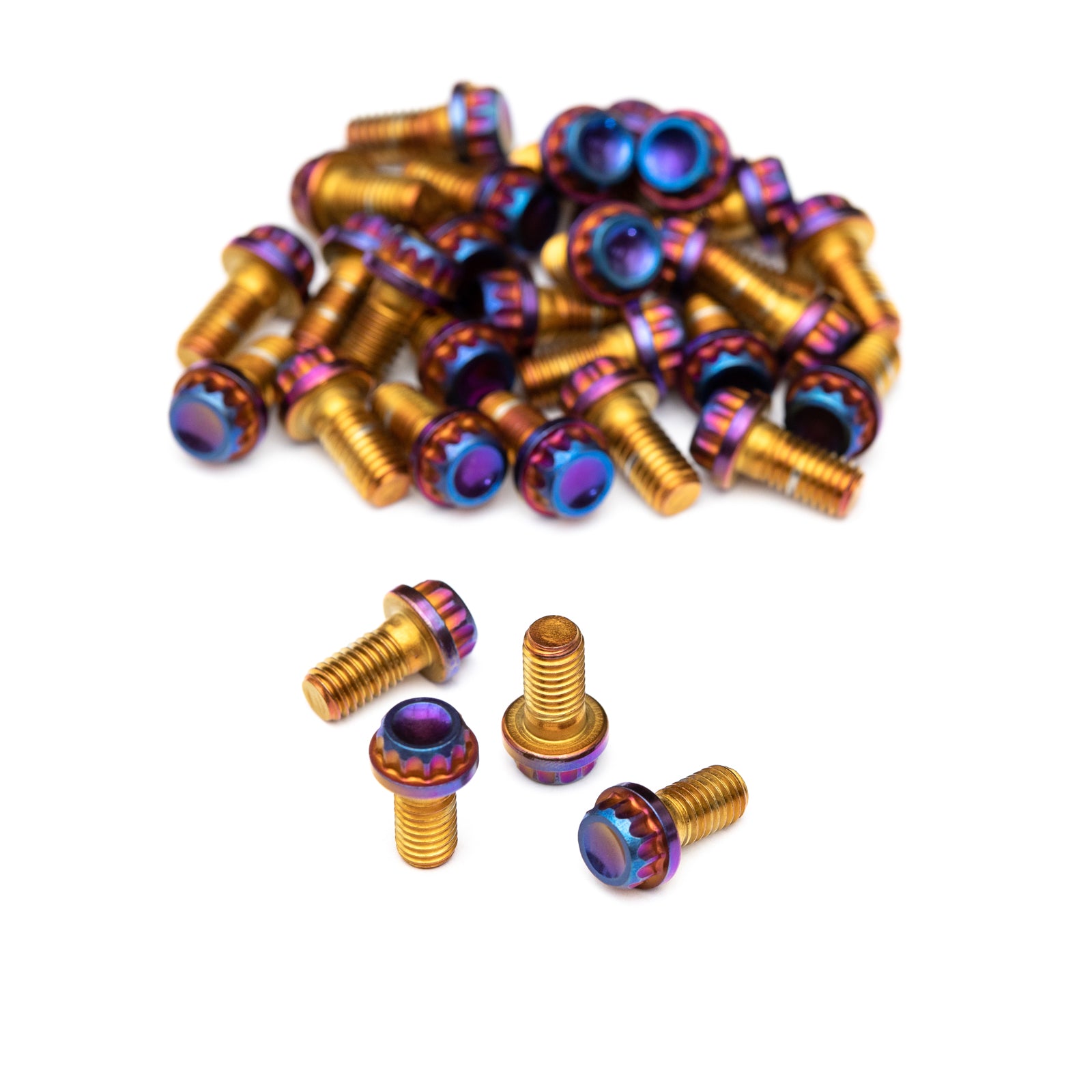 This will include a complete set of PVD burnt titanium assembly hardware for a full set of wheels; 35 bolts per wheel, 140 bolts total. The amount of long and short assembly bolts will be determined by the serial number provided when adding to the cart. Any long assembly hardware will include the nuts they require and any short hardware will not include nuts as they thread directly into the wheel center.