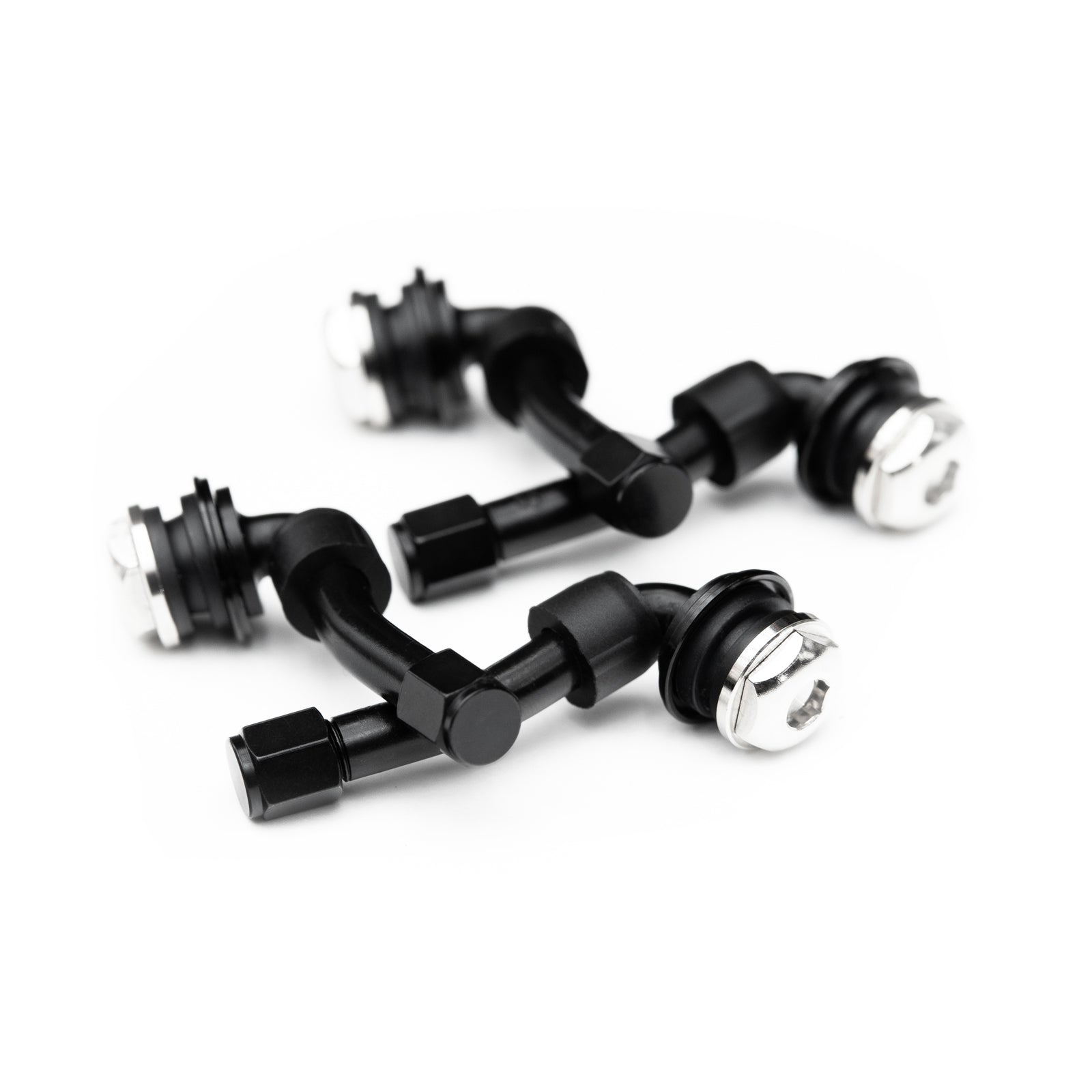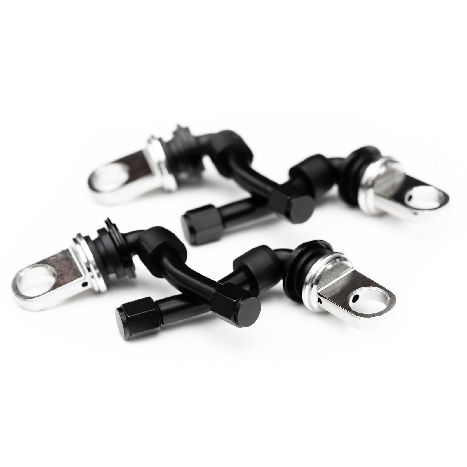 Stainless bolt-in 90 degree valve stems in a black finish. Compatible with all our flat lip HB & HB-R series modular wheels. These will not fit our monoblock or step lip modular wheels.